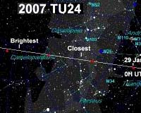 中新網(wǎng)1月25日電 美國太空總署(NASA)24日表示,本月29日,直徑約150至600米的小行星“2007 TU24”將接近地球,但無相撞風(fēng)險。據(jù)悉,小行星將于格林威治時間當(dāng)天上午8時34分(北京時間下午4時34分)最接近地球,如天色夠暗及無云,使用業(yè)余天文望遠鏡便可看到。