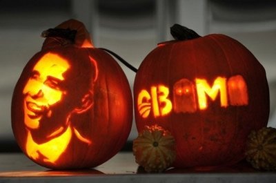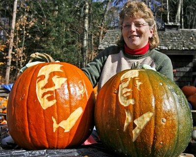 今年恰逢美國大選年,美國總統候選人奧巴馬和麥凱恩的造型受到了南瓜雕刻愛好者的追捧。另外,還有美國商家趁機雕刻了上千只造型各異的南瓜,等待萬圣節時擺上柜臺。
