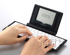 日本一家文具公司所推出的折疊式電子記事本(pomera),訂價27000多日元,約折合2050元。功能上就定位為簡單的記事文具,它的尺寸與口袋書相當,重量只有370公克。特點是折疊式的鍵盤跟屏幕,鍵盤打開來時不小于B5尺寸,具有隨時收放、輕松記錄的特性。此外電源則采用可長時間使用的電池。