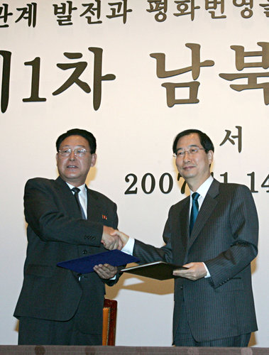 中新網11月16日電 綜合韓聯社報道,朝韓總理會談雙方代表團在16日上午舉行的總結會議上通過了一項《關于履行“旨在發展朝韓關系及和平繁榮的宣言”的第一次朝韓總理會談協議》(含八條共49項)和2項附加協議。