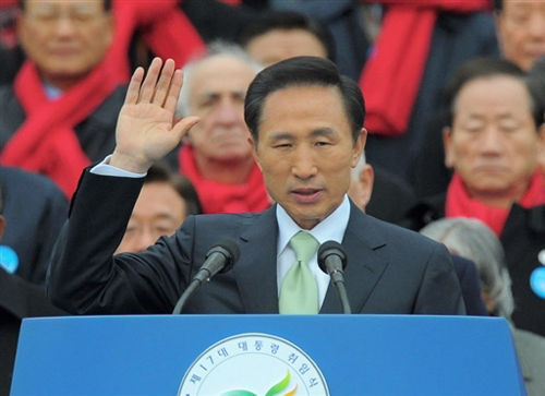 李明博正式宣誓就任韓國總統 萬人參加就職典禮