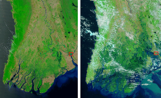 NASA公布熱帶風暴襲擊緬甸前后對比照片(圖)