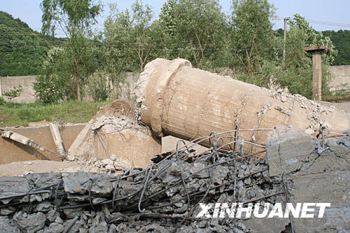 爆破完成后,朝方安排記者前往現場實地查看爆破效果。冷卻塔已化為瓦礫,手指般粗的鋼筋暴露無遺,塔頂坍塌在一旁,四周臨時遮擋物的破損狀況并不嚴重。很明顯,這是一次成功的爆破。(記者 高浩榮 張濱陽)