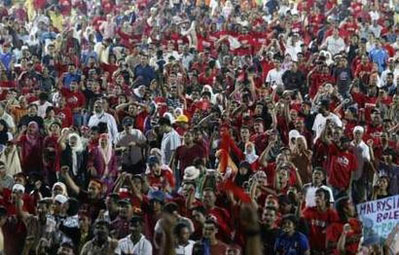 中新網(wǎng)7月7日電 馬來西亞雪蘭莪州約1.5萬名民眾,6日在當?shù)匾粋體育館內(nèi)舉行示威集會,抗議最近油價急升。