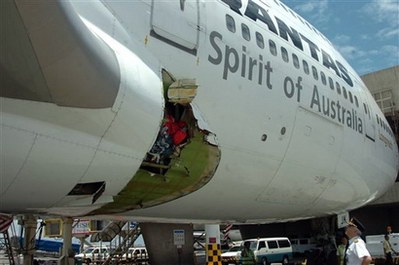 菲律賓馬尼拉國際機場總經理阿方索26日指出,根據機場安全官員拉交的報告,他認為是飛機自身的技術問題而非爆炸導致了機身上的大洞。一名不愿透露姓名的機場技術人員則表示,調查的重點集中在兩種可能性上,一是機載行李中的物品發生了爆炸,二是機身上的某個部件在高空飛行時出現了松動。但他認為,即便是爆炸也不太可能由炸彈引起,而更可能是行李中某個受到了壓力的容器引發的。澳航某位資深飛行員則將事故歸咎于澳航把客機維修業務“外包”給馬來西亞,這一決定已使許多飛行員對客機的機械狀況感到擔憂。此前有報道稱,這架航齡已達17年的客機,在今年3月接受全面整修時發現了機身大量部件腐蝕的現象。