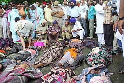 信眾在狹窄通道上爭相走避,其間不少婦孺遭踐踏,有人被摔落山坡。警方指,信眾亂竄時兒童首先跌倒,父母也無法保護他們。死者大多來自鄰近旁遮普邦,當中許多人死于窒息。一名女信徒說:“當時許多人在里面,當大家開始跌倒時,人人都爭相走避。”