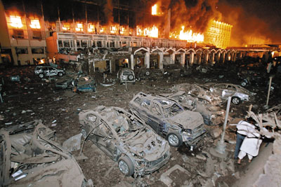 就在爆炸發生前,新任總統扎爾達里在距離酒店數百米的國會首次發表演講,聲稱必須鏟除恐怖主義。