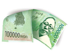韓國政府原計劃于明年年初發行的10萬韓元面值的紙幣。