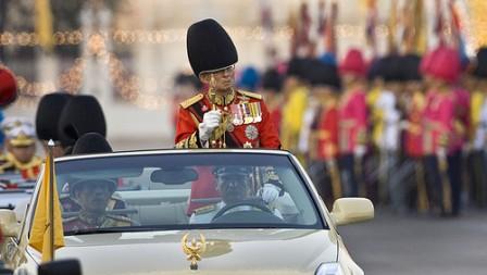 當天下午,泰國首都曼谷的五世王廣場一帶張燈結(jié)彩,每年一度的慶祝國王生日閱兵典禮在這里隆重舉行。接受檢閱的泰國各兵種官兵在武裝部隊總司令的帶領(lǐng)下向國王宣誓效忠。國王隨后發(fā)表了簡單講話,希望軍隊保持團結(jié),為維護國家和人民利益發(fā)揮積極作用。