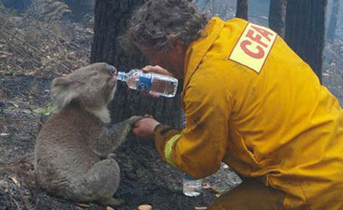 善待動物組織亞太分部14日宣布,他們將向拯救樹袋熊的消防員大衛·特里頒發獎章,以表揚其善行。特里在參與協助維多利亞州山火救援行動時,在距離墨爾本約150公里處的一片焦黑的森林中,發現一只受傷的樹袋熊,特里悉心照顧樹袋熊并喂它喝水。這一感人的場面被攝入鏡頭,后被媒體廣泛采用,引起了人們的關注。
