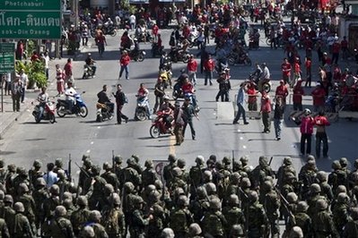 泰國總理阿披實13日夜對媒體稱,在同反政府示威者進行一天的爭斗后,軍隊已經控制住首都曼谷的局勢。阿披實說,人們有權舉行和平示威,但不是暴亂。他說,“我們相信,我們已經控制住局勢。”