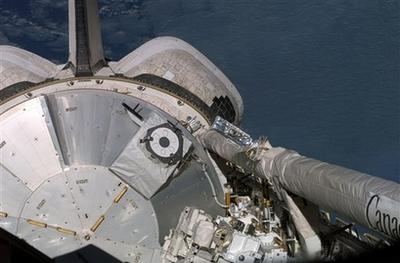 中新網(wǎng)3月13日電 綜合報道,美國當(dāng)?shù)貢r間12日晚,“奮進(jìn)”號航天飛機(jī)與國際空間站成功對接,但比原定時間遲了40分鐘。