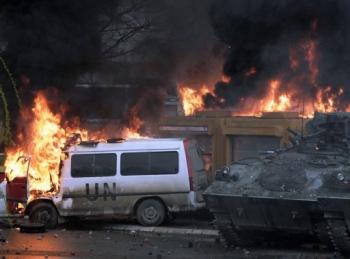 一些民眾強行進(jìn)入位于米特羅維察北部的聯(lián)合國地區(qū)法院,降下了懸掛在法院建筑上的聯(lián)合國旗幟,升起了塞爾維亞國旗。
