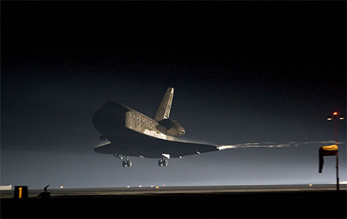 美國當地時間26日晚,“奮進”號航天飛機安全降落在佛羅里達的肯尼迪航天中心。