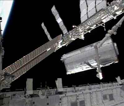 包括日本宇航員星出彰彥在內的多名宇航員使用機械臂使太空艙就位,之前還有宇航員進行了幾個小時的太空行走,為對接作準備。“發現號”航天飛機經過兩天的飛行于周一與國際空間站對接。