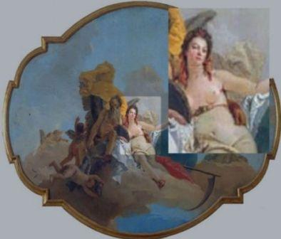 這幅名畫是意大利十八世紀洛可可風格大師提埃坡羅的名作之一,名為《Truth Revealed by Time》,由貝盧斯科尼親自挑選,掛于總理府新聞發布室墻上作裝飾,期望增添一點藝術色彩。