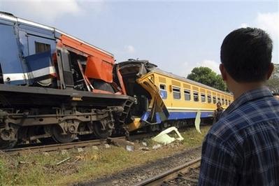警方稱,事故發(fā)生在距印尼首都雅加達西北部185英里處的村莊附近,一輛緩慢行駛的客運貨車與一個已經(jīng)入泊的火車頭相撞,造成9人死亡,數(shù)十人受傷。