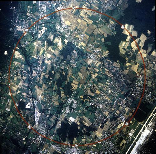 大型強子對撞機位于瑞士、法國邊境地下100米深的環形隧道中,隧道全長達27公里