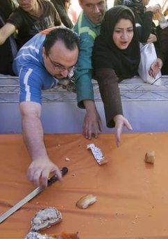 中新網10月19日電 據臺灣中廣新聞報道,伊朗做出刷新世界紀錄的特大號三明治,可是還來不及完成認證,就被圍觀的群眾搶食一空。