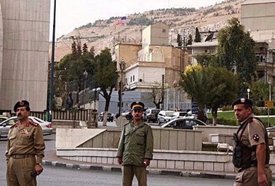 敘利亞士兵在美國大使館外巡邏。