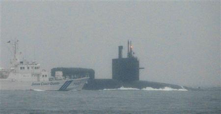 美國“俄亥俄”號核潛艇正在離開日本橫須賀基地 圖片來源:環球網