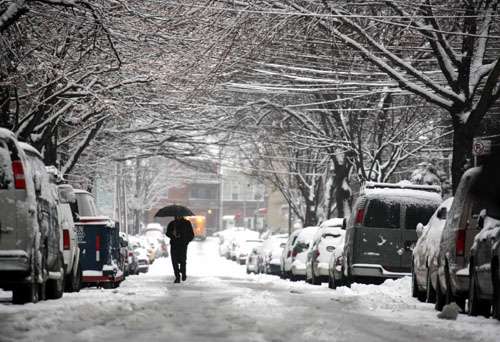 紐約市政府自昨天晚間即嚴陣以待,二十日上午十時前后紐約市開始飄雪,紛飛的雪花在路面累積的同時,市區各地已見到掃雪車在清理道路。紐約市長彭博已下令約二千名清潔工人臨時調班清理路上積雪。午間,彭博不但親自到道路清潔隊去視察,同時也透過媒體呼吁民眾在風雪天少開車、改搭乘大眾捷運交通工具。