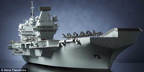 美國海軍時報的文章稱,中國航母若真是5-6萬噸的排水量,那就與英國正開始建造的“伊麗莎白女王”級航母有的一比。英國“伊麗莎白女王”級航母稍大,排水量是6.5萬噸,艦上載員1400名,設計搭載40架固定翼戰(zhàn)機,此外還將搭載直升機。