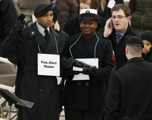 中新網(wǎng)1月12日電 還有不到10天時間,美國歷史上第一位黑人總統(tǒng)奧巴馬就要宣誓就職,于1月20日舉行的總統(tǒng)就職典禮自然萬眾矚目。11日,典禮進行了彩排。所有重要人物都由替身演員代替,而司儀對奧巴馬名字的念法,也引來眾多聯(lián)想。