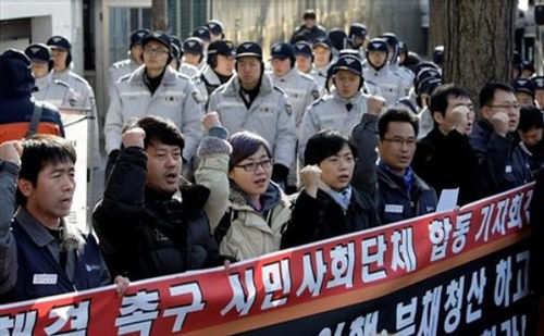首爾當(dāng)?shù)?3日中午,數(shù)十名雙龍工會(huì)及一些市民團(tuán)體成員圍堵在中國(guó)大使館門(mén)前示威,在近兩個(gè)小時(shí)的抗議過(guò)程中,示威者借助擴(kuò)音器不斷地喊“中國(guó)上汽應(yīng)做出賠償”、“上汽竊取雙龍汽車(chē)核心技術(shù)”等口號(hào),這些人的圍堵給使館人員進(jìn)出造成很大不便。多家韓國(guó)媒體也趕到抗議現(xiàn)場(chǎng)報(bào)道,紐西斯通訊社報(bào)道稱(chēng),參加示威的有雙龍工會(huì)等11個(gè)市民團(tuán)體成員。工會(huì)方面宣稱(chēng),由于上汽是中國(guó)國(guó)有企業(yè),中國(guó)政府也該為雙龍危機(jī)負(fù)責(zé)。而一些團(tuán)體指責(zé)“上汽偷竊雙龍技術(shù)是對(duì)數(shù)十萬(wàn)韓國(guó)工人的犯罪”,要求韓國(guó)政府追究上汽責(zé)任。