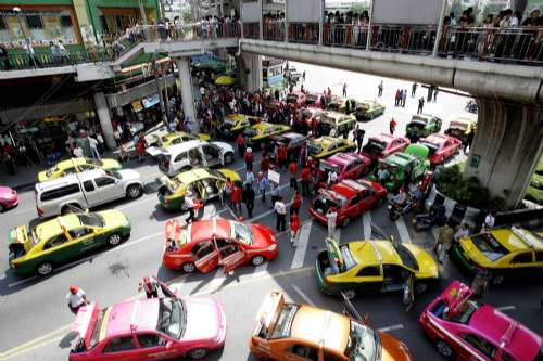 交通警察稱,出租車司機也參與了示威活動,導(dǎo)致曼谷中心地區(qū)至少一處主要樞紐地帶被堵,勝利紀念碑附近水泄不通。阿披實政府目前拒絕使用武力驅(qū)散示威者。