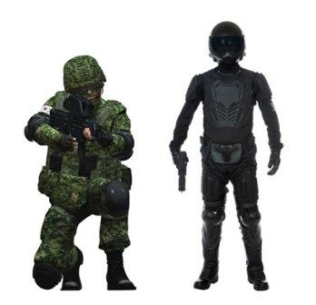 國防科學研究所有關負責人表示:“如果穿上分兩個階段開發出的戰服并戴上頭盔,士兵就無異于佩備尖端裝備的‘機器戰警’。”目前,許多發達國家也在開發類似的未來士兵體系,例如,美國的“陸地勇士”(Land Warrior) 等。
