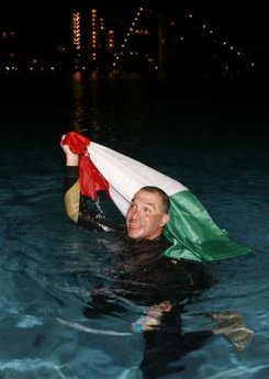 19日傍晚,賈科尼亞在眾人的見證下開始了挑戰(zhàn),他一直從傍晚游到深夜,又從深夜游到白天,24小時(shí)之后,賈科尼亞以101公里的成績(jī)改寫了世界紀(jì)錄,超過原紀(jì)錄30多公里。69.5公里的原世界紀(jì)錄是他今年11月份在奧地利創(chuàng)造的。
