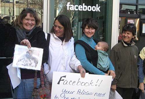 部分婦女更在Facebook位于加州帕洛阿爾托的總部前示威,抗議Facebook禁止女性哺乳相片。Facebook在未預(yù)先警告的情況下,刪除了數(shù)百名女用戶的哺乳照片,并通知她們?nèi)粼儆蓄愃普掌,將取消其賬戶。