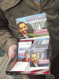 理查德在販賣“奧巴馬保險套”的同時,也同時推出“麥凱恩保險套”與“佩林保險套”。