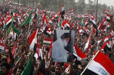 示威者響應什葉派政治人物薩德爾的號召,一大早在巴格達東部薩德爾城的穆扎法爾廣場聚集。大部分示威者是年輕人,也有一些婦女和兒童。他們揮舞著伊拉克國旗,手舉薩德爾畫像,高喊“侵略者滾出去!我們不要駐軍地位協議!”等口號,一直游行到約3公里外的穆斯坦西里亞廣場。