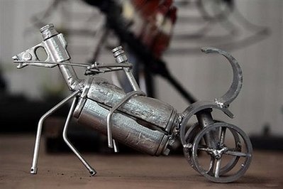 中新網(wǎng)4月10日電 據(jù)法新社9日?qǐng)?bào)道,伊拉克巴格達(dá)舉行的戰(zhàn)爭(zhēng)藝術(shù)展引人注目,隨著戰(zhàn)火的逐漸消退,藝術(shù)愛(ài)好者們收集起戰(zhàn)火中槍支炮彈的碎片,極富創(chuàng)意的利用它們組成了一件件象征希望的藝術(shù)品。