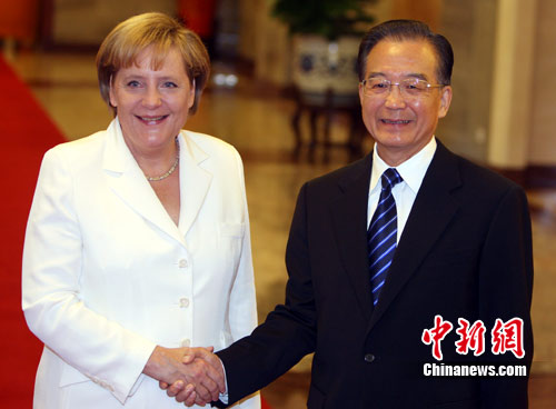 中新網北京7月16日電(記者 余湛奕) 中國國務院總理溫家寶與德國總理默克爾16日上午在人民大會堂舉行會談。