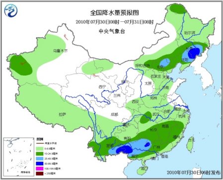 7月30日08時(shí)至31日08時(shí),新疆西部、西藏中南部、內(nèi)蒙古中東部、東北、華北北部、黃淮中南部、江淮、江漢大部、江南、華南以及川西高原南部、重慶東南部、云南、貴州等地有小到中雨或陣雨,其中,廣西大部、云南東南部、江西南部、福建西南部、遼寧、吉林中東部、黑龍江西北部及新疆天山西部等地有大雨,部分地區(qū)暴雨;上述地區(qū)局部并伴有短時(shí)雷雨大風(fēng)等強(qiáng)對(duì)流天氣。新疆北部和東部、甘肅西北部、內(nèi)蒙古東部、東北地區(qū)中北部等地有4~5級(jí)風(fēng)。東海大部、臺(tái)灣海峽、南海西北部和南部、北部灣有5~6級(jí)南到西南風(fēng)。