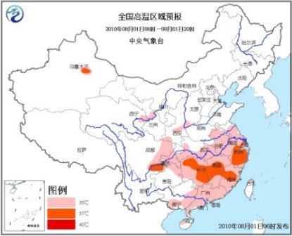 預計,今天白天,黃淮南部、江淮、江漢南部、江南、華南大部、四川盆地中東部、重慶中南部、貴州東北部、新疆吐魯番盆地、甘肅中部、陜西關中地區等地有35~37℃的高溫天氣,局部最高氣溫可達38℃以上。