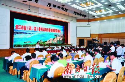 昨日上午,在會議進行了2小時后,會議主持人湛江市委書記、市人大常委會主任陳耀光宣布,目前,“碧海銀沙”上“述職述廉”專題的點擊量已經(jīng)超過了756萬次,跟帖2萬多。