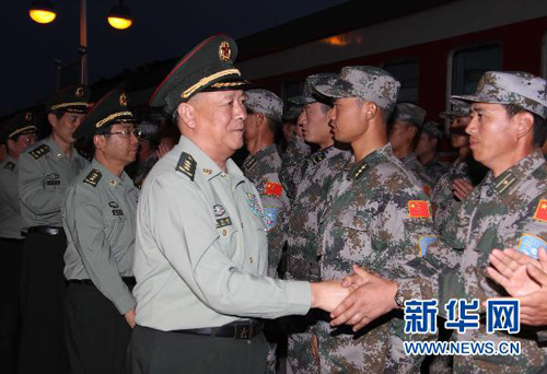 參加“和平使命-2010”上海合作組織成員國(guó)武裝力量聯(lián)合反恐軍事演習(xí)的中方陸軍戰(zhàn)斗群第一梯隊(duì)正乘坐軍列一路西行,前往位于哈薩克斯坦南部的演習(xí)地域。