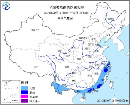 中新網9月11日電 據中央氣象臺網站消息,中央氣象臺9月11日06時繼續發布暴雨藍色預警:9月11日08時到12日08時,江蘇東南部、上海、浙江大部、江西東北部和東南部、福建大部、廣東中南部和東部、廣西南部、云南南部等地有大雨或暴雨;上述地區局部并伴有短時雷雨大風等強對流天氣。