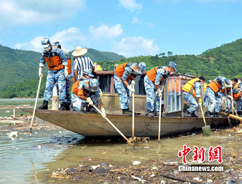 中新網高州9月26日電 (肖德倫 徐苗波)南海艦隊某陸戰旅在25日派出175名官兵、40輛工程車輛的基礎上,今天又增派200名陸戰隊員,緊急奔赴100多公里趕赴茂名市搶險救災。