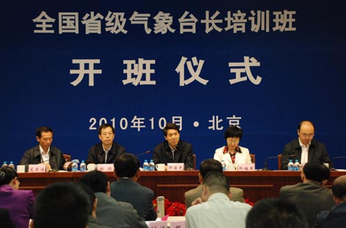 10月11日,全國省級氣象臺長培訓班在京正式開班。中國氣象局黨組書記、局長鄭國光,副局長矯梅燕出席開班儀式。鄭國光在開班儀式上強調,氣象臺長要結合實際、深入思考,擔負起領導新時期現代氣象預報預測業務和服務的重任。