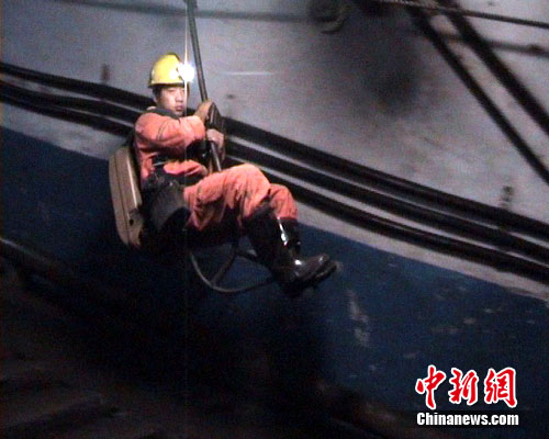 隨后記者跟隨救援隊進入井下,幾名礦工正在沖洗巷道。旁邊就是入井隧道,也是通往井底的唯一道路,救援人員正坐著吊車慢慢滑入深600多米的井底,全力搜救下落不明的礦工。