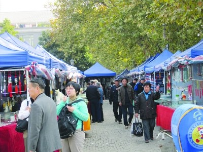 昨天上午,記者來到山巷廣場,發現這里帳篷如林,各種奇石玉器琳瑯滿目,眾多市民參觀購物。一位來自遼寧的王姓商販告訴記者,是一位姓劉的人主動發短信組織他們來此擺攤設點進行玉器展銷的,每個攤位交納1000元。記者在一位遼寧女攤主的手機上看到該短信:“鎮江首屆奇石玉器展在大西路山巷廣場舉辦,緊鄰富人區,展費1200元”。攤主們說,他們已經將每個攤位一至兩千元的租金交給了劉某,劉某說罰款已交給城管了,讓他們放心大膽擺攤。