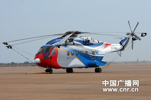 中航生產的我國最大的直升機AC313將首次在航展亮相并參加飛行表演(中廣網記者邱翔 攝)