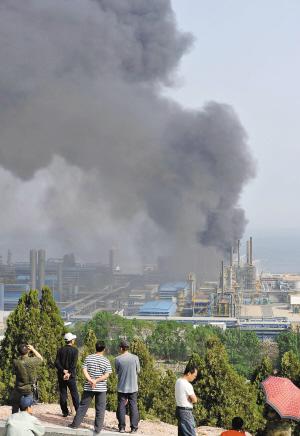 6月2日,中石油大連石化分公司廠區因爆炸冒出滾滾黑煙。
