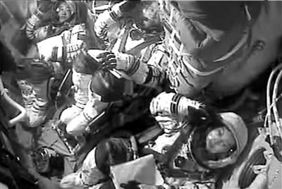 由于失重飄浮,航天員行動起來不像在地面上那樣自如,坐立不穩搖搖晃晃,稍一抬頭仰身就有可能來個大翻身,彎腰時又可能翻筋斗,所以一切動作都得小心翼翼。