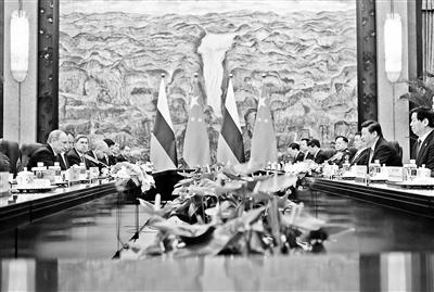 習(xí)近平指出,中俄合作是全方位、多層次的。雙方要再加把勁,努力實現(xiàn)2015年前雙邊貿(mào)易額達(dá)到1000億美元的目標(biāo)。對中俄務(wù)實合作,我們既推動量的提升,也重視質(zhì)的跨越,通過建立中俄投資合作委員會、高級別專項小組等機制,推進(jìn)經(jīng)貿(mào)、投資、能源、高技術(shù)、航空航天、基礎(chǔ)設(shè)施建設(shè)、民生等領(lǐng)域戰(zhàn)略性大項目合作。要對接絲綢之路經(jīng)濟帶和俄羅斯跨歐亞鐵路建設(shè),拉動兩國經(jīng)貿(mào)往來和毗鄰地區(qū)開發(fā)開放,共享歐亞大通道和歐亞大市場。